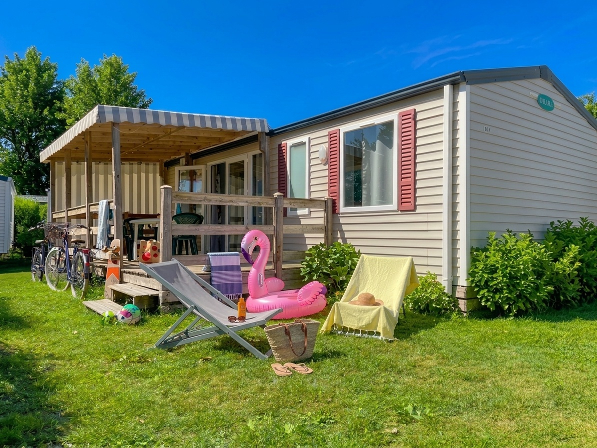 N.B : Le Conseil d’Emilie : Si vous choisissez un Mobil home Top presta, vous profiterez d’une climatisation, d’une TV et d’un Lave-vaisselle